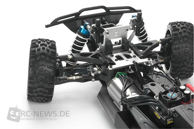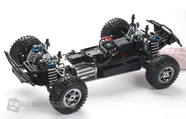 Carson präsentiert den Desert Master Brushless-Truck im Maßstab 1:8. Der Short Course-Truck basiert auf dem Specter II Brushless-Buggy und wird mit zwei 7,4V/2S-Akkupacks betrieben. Die Ausstattung umfasst einen 2340 kv-Motor, einen Dragster XL-Regler, 3 Stahldifferenziale, Big Bore-Dämpfer sowie eine 2-Kanal 2,4 GHz Fernsteueranlage.