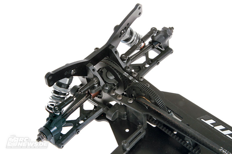 Nicht im Baukasten enthalten ist die gesamte Elektronik (Regler, Motor, Servo, Akku, Empfänger), die Reifen und die Karosserie.
