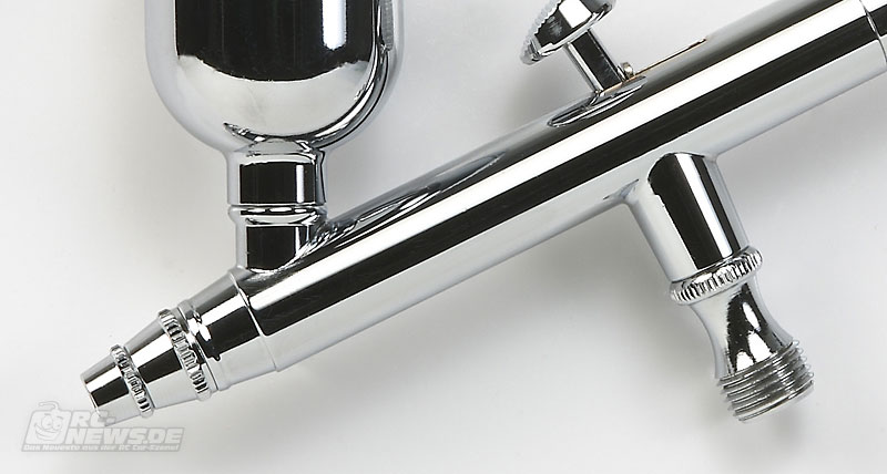 Die Spray-Work High Grade Airbrush III (Super Fine) von Tamiya besitzt eine 0,2 mm große Düse und ist mit einem abnehmbaren 7 ml Farbbecher (17ml Farbbecher #300074511 optional) ausgestattet. Als Besonderheit kann die Airbrush als Single-Action- und als Double-Action-Pistole eingesetzt werden. Der Preis liegt bei 159,99 Euro (UVP).