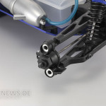Kyosho stellt den 4WD-Buggy DBX 2.0 mit einem neuen 2.4GHz-Fernsteuersystem vor. Das Chassis des DBX 2.0 ist aus hochwertigem Aluminium gefräst und wirkt durch seine Verlängerung um 20 mm fast wie ein 1:8-Modell, wiegt aber unter 2,4 kg. Vorder- und Hinterachse sind nach wie vor identisch aufgebaut, jedoch kommen neue Querlenker mit verbesserter Geometrie zum Einsatz. Hieraus resultiert ein neutraleres Fahrverhalten. Die Pivotball-Aufhängungen an Vorder- und Hinterachse stammen aus dem Wettbewerbsbereich und ermöglichen das Einstellen des Radsturzes ohne eine Demontage der Räder. Ausgeliefert wird der Buggy in einer fahrfertigen ReadySet-Ausführung zu einem Preis von 309 Euro (UVP).