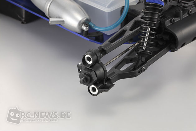Kyosho stellt den 4WD-Buggy DBX 2.0 mit einem neuen 2.4GHz-Fernsteuersystem vor. Das Chassis des DBX 2.0 ist aus hochwertigem Aluminium gefräst und wirkt durch seine Verlängerung um 20 mm fast wie ein 1:8-Modell, wiegt aber unter 2,4 kg. Vorder- und Hinterachse sind nach wie vor identisch aufgebaut, jedoch kommen neue Querlenker mit verbesserter Geometrie zum Einsatz. Hieraus resultiert ein neutraleres Fahrverhalten. Die Pivotball-Aufhängungen an Vorder- und Hinterachse stammen aus dem Wettbewerbsbereich und ermöglichen das Einstellen des Radsturzes ohne eine Demontage der Räder. Ausgeliefert wird der Buggy in einer fahrfertigen ReadySet-Ausführung zu einem Preis von 309 Euro (UVP).