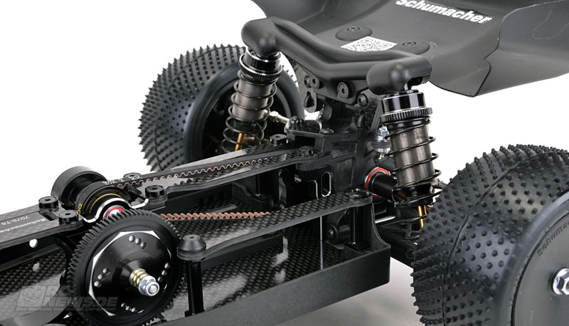 Als Chassis-Material setzt Schumacher 2,5mm starke und sehr leichte Kohlefaser-Platten ein.