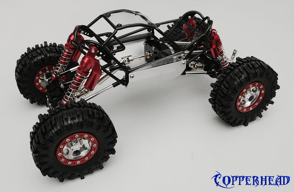 Der Copperhead-Crawler von RC4WD ist im Maßstab 1:10 gehalten und mit einem geschweißten Tuber-Chassis, Alu-Beadlockfelgen sowie Piggyback-Dämpfern ausgestattet.